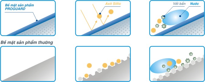 Công nghệ Proguard có tác dụng ngăn ngừa chất bẩn và silic có trong nước bám vào bề mặt sứ cũng như hạn chế tối đa việc hình thành các vết ố trên bề mặt. Bồn cầu Inax ứng dụng công nghệ Proguard sở hữu bề mặt luôn trơn bóng, sạch sẽ mà không tốn nhiều công sức cọ rửa.